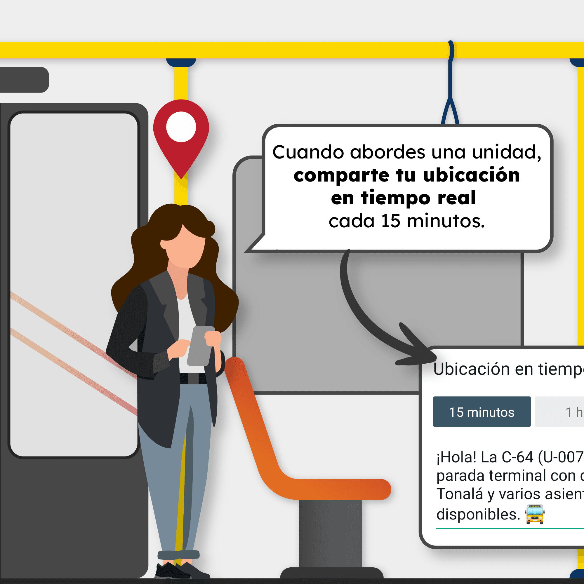 Solo compartir ubicación a bordo de las unidades y en lapsos de 15 minutos máximo.